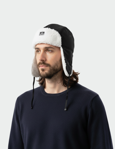 Le bonnet avec oreillettes est destiné à être utilisé dans les zones tempérées, subarctiques et arctiques dans une large plage de températures.